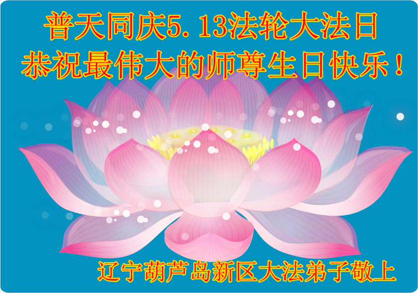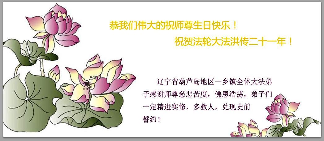 祝師父生日快樂!恭賀法輪大法傳世二十一週年!遼寧省葫蘆島市大法弟子一定會做好三件事,共同精進,反迫害,救度眾生!