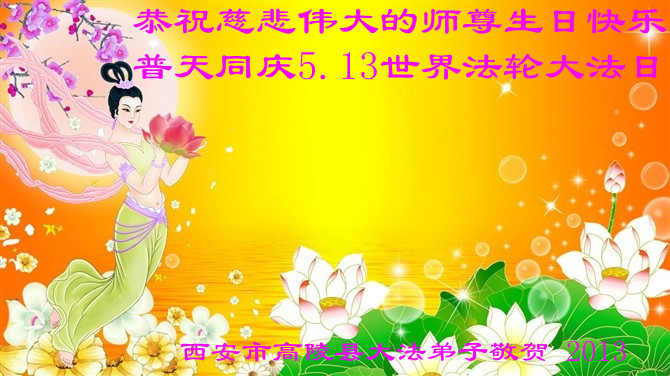 陝西省西安、渭南、寶雞、漢中、榆林、延安、咸陽、銅川、安康、商洛全體大法弟子恭賀師尊華誕暨法輪大法日!