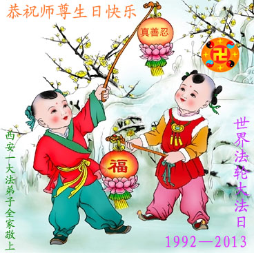 陝西西安一大法弟子全家恭祝師尊生日快樂!同慶世界法輪大法日!