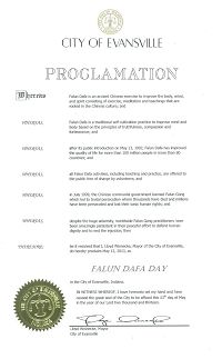 美國印第安納州埃文斯維爾市褒獎法輪大法