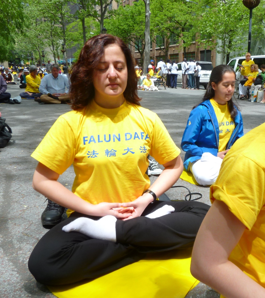 土耳其學員艾奴•戴米爾坎(Aynur Demirkan)修煉十三年了,她曾經身體虛弱,有很多疾病,特別是在生孩子後得了產後風,還有多年的胃病,膝蓋由於小的時候摔傷,只要走路多一些就會很痛。自從修煉大法後,過去的這些疾病都好了。戴米爾坎感慨自己很幸運能夠修煉法輪大法。如今來到紐約和這麼多的法輪功學員一起煉功,她特別高興,真希望能夠讓更多人知道法輪大法好。她也想讓這裏的人能夠了解到,在遙遠的土耳其也有人修煉法輪功,法輪大法洪傳世界各個角落,各族裔的人們都受益。