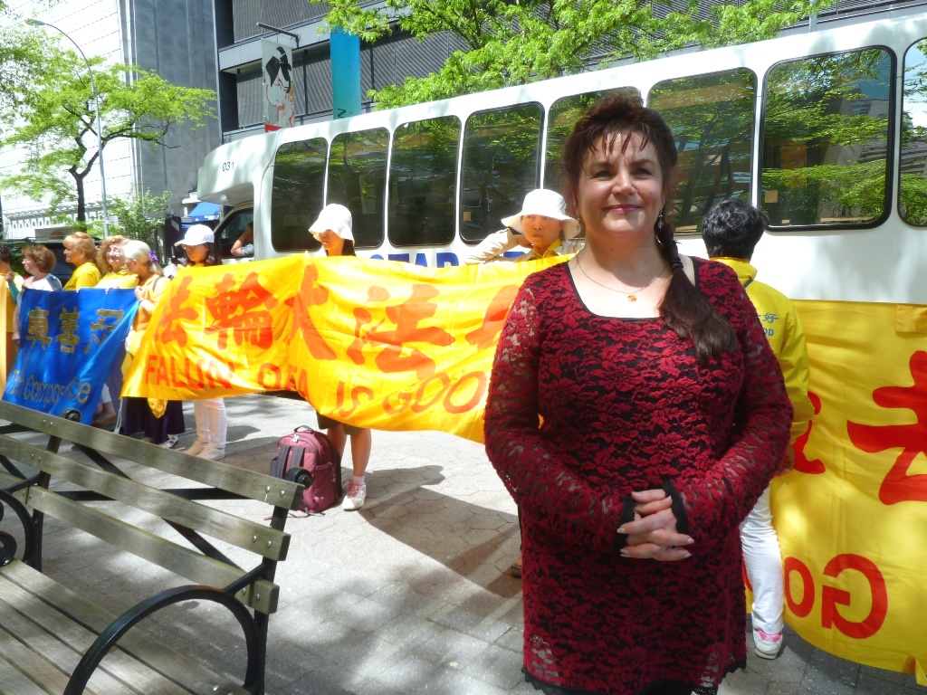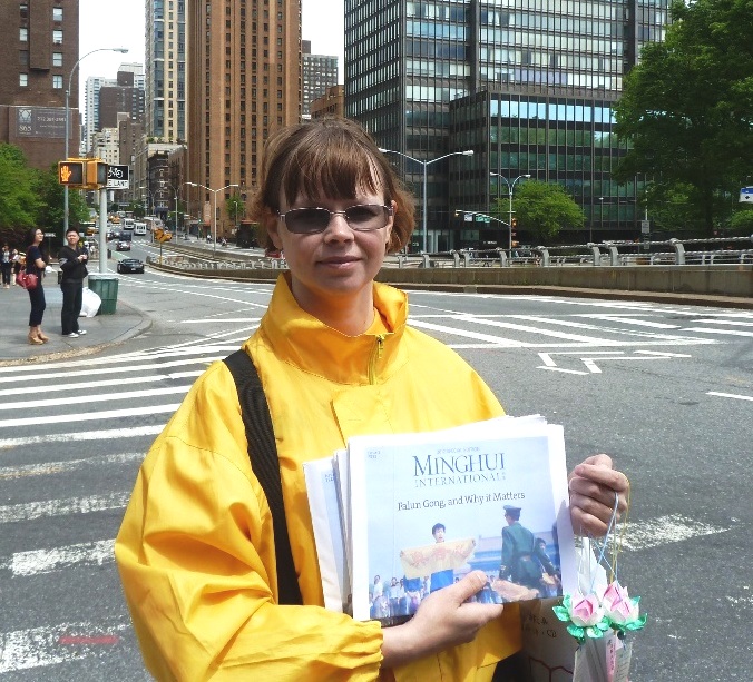 俄羅斯聖彼得堡學員奈麗(Neli Li)是一位有二十多年工作經驗的獸醫,二零零二年開始修煉大法,這是她第三次參加紐約法會,感到很高興。奈麗說:我曾經很長時間在尋找修煉的方式,學習過其它種類氣功,我的一位氣功老師向我介紹了法輪功。我開始了解這個功法,我覺得我和大法很有緣份。我自修煉大法以後不再吸煙,胃病也好了。法輪功功法對身體健康有奇效,這是我的親身體驗。