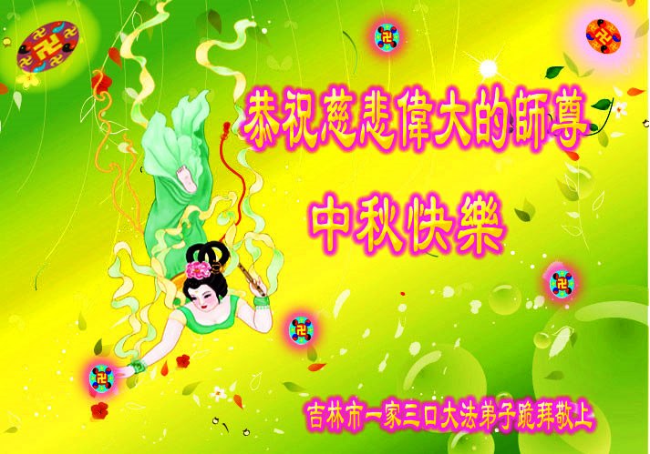 吉林市一家三口大法弟子恭祝慈悲偉大的師尊中秋快樂!