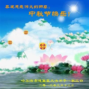 黑龍江省哈爾濱道裏區大法弟子一家三口恭祝慈悲偉大的師尊中秋節快樂!
