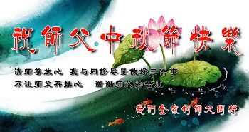 師尊:您好!又到一年中秋月圓時,每逢佳節,倍加想念師尊,倍加感恩師尊慈悲苦度。師尊您辛苦啦!弟子惟有加倍努力,精進實修,做好三件事,圓滿隨師還。