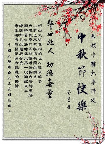 恭祝偉大的師尊中秋節快樂,感恩師尊的慈悲救度,感恩師尊為眾弟子、眾生承受的一切。我們一定緊跟師尊,做好三件事。