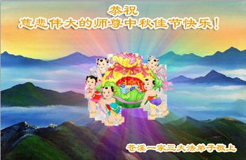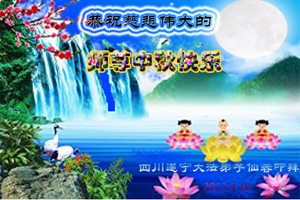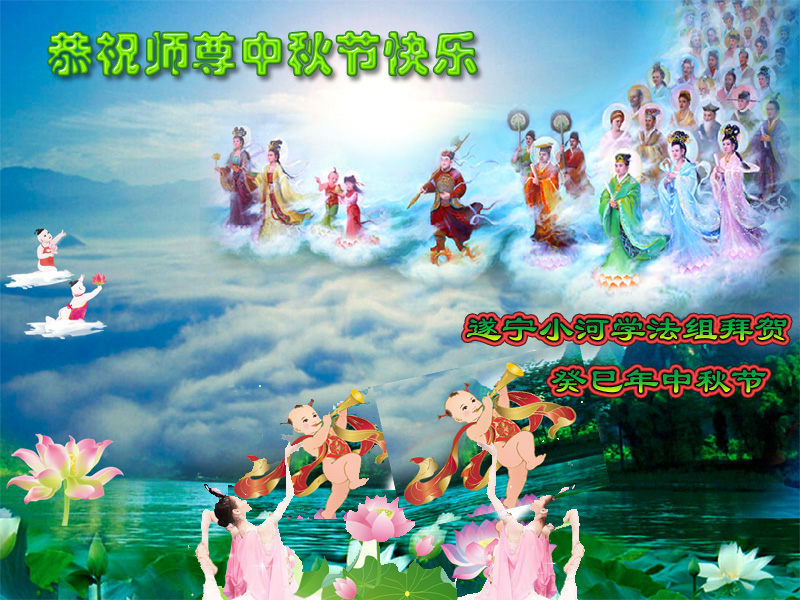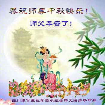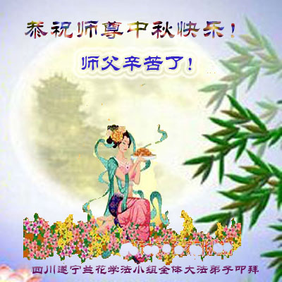 在這‘每逢佳節倍思親’的時刻,我們遂寧小河學法組大法弟子及家人向慈悲偉大的師尊致以中秋佳節的問候:「師父中秋節好!」並恭祝師尊:「中秋節快樂!」