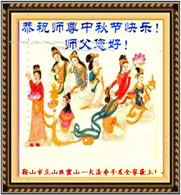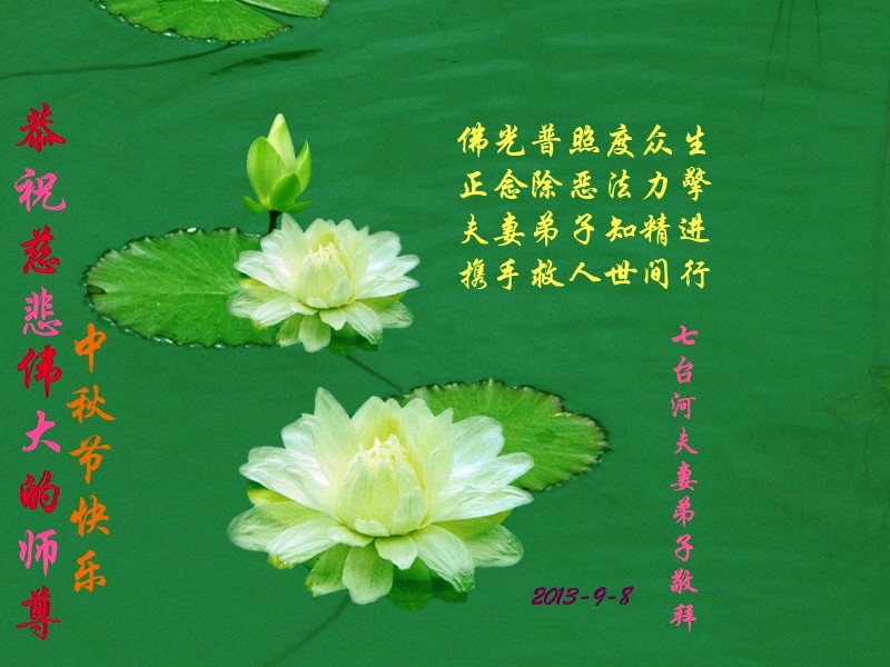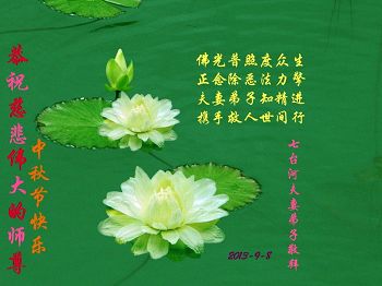 弟子及全家恭祝偉大的師父中秋節快樂!弟子想念您!請師父放心一定精進實修,做好三件事,圓滿隨師還。