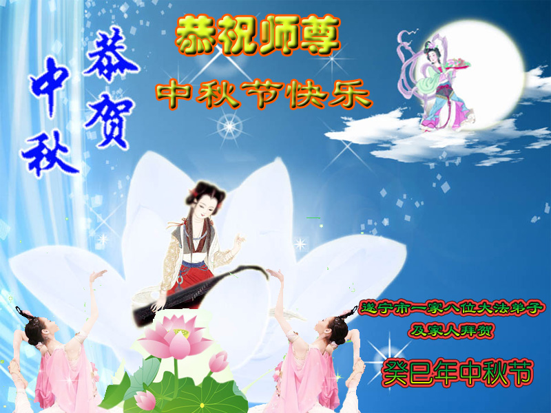 在這「每逢佳節倍思親」的時刻,我們遂寧市一家八位大法弟子及家人向慈悲偉大的師尊致以中秋佳節的問候:師父中秋節好! 中秋節快樂!