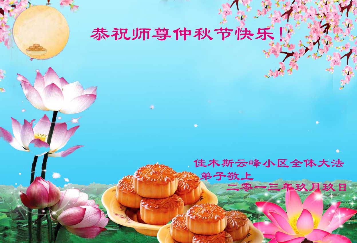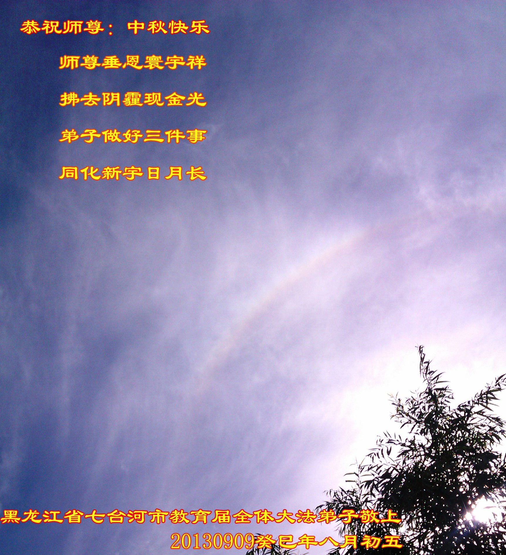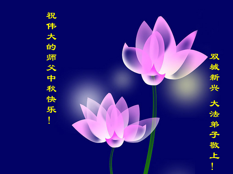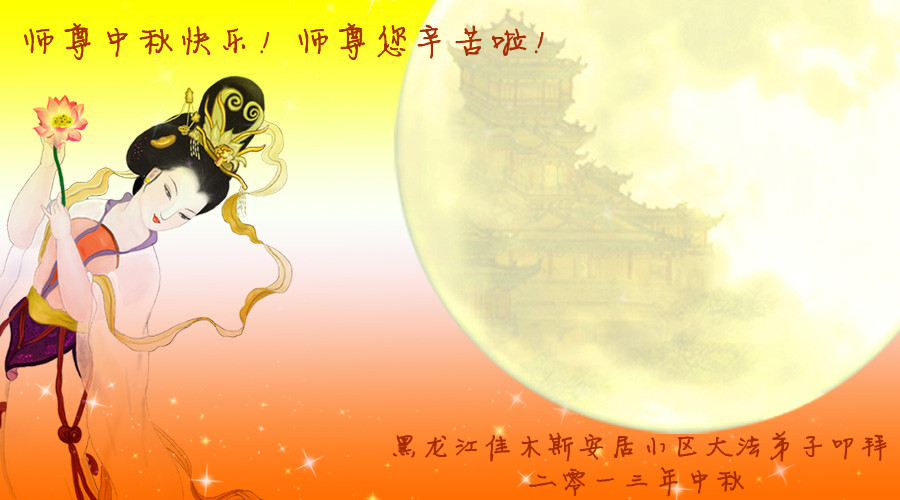 黑龍江省七台河市新興區兩位大法弟子恭祝慈悲偉大的師尊中秋節快樂,同時感謝師尊對弟子們的慈悲救度與呵護!