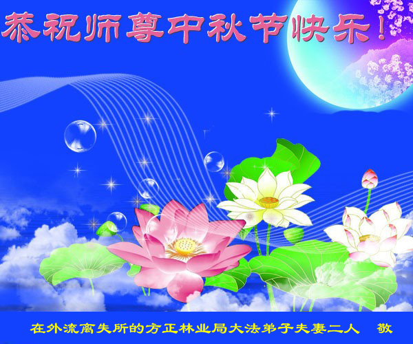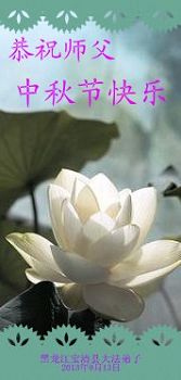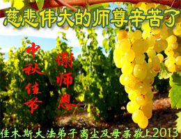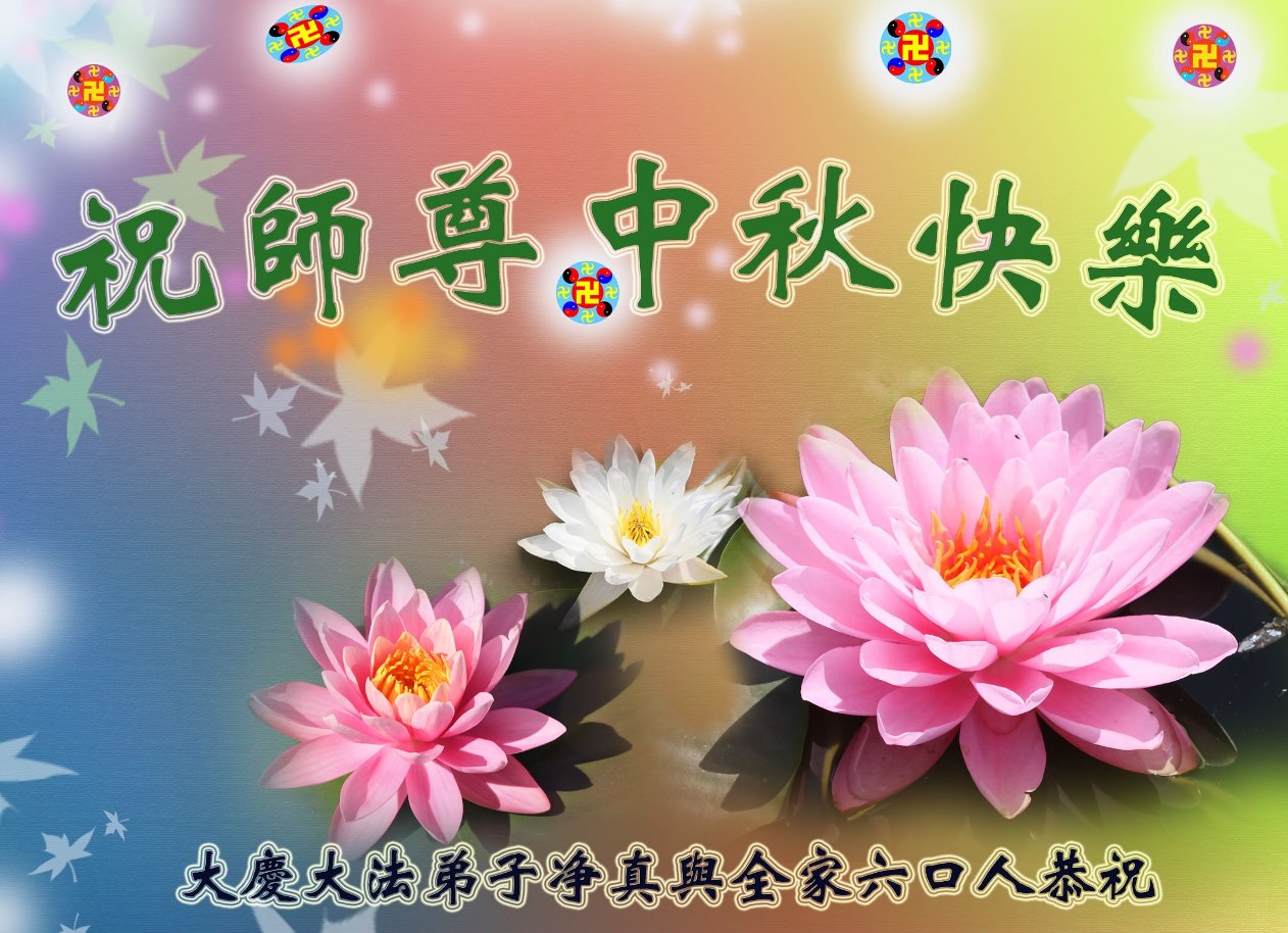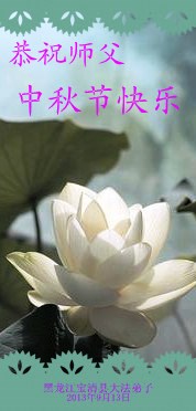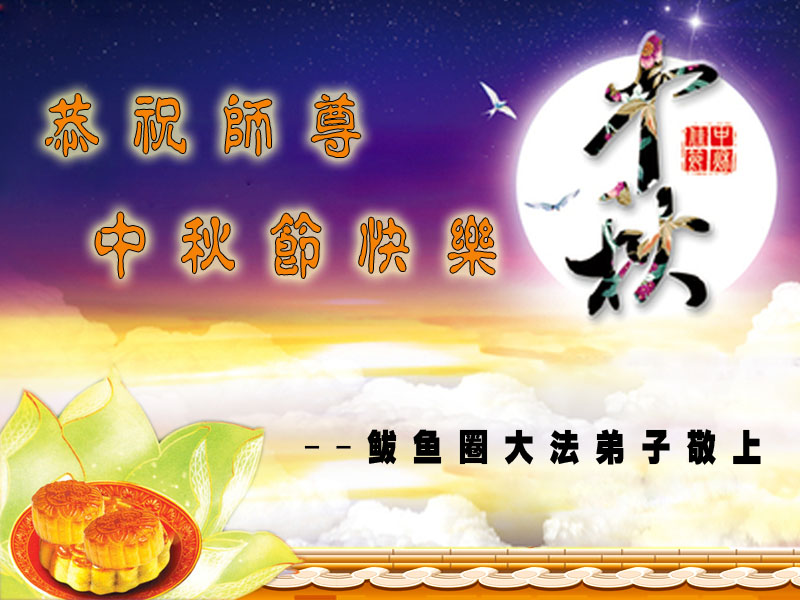 師父;您正法救度眾生,看護大法弟子修煉吃盡了萬般苦,我們只有加緊做好三件事報師父救度之恩。師父辛苦了,祝師父中秋節愉快!