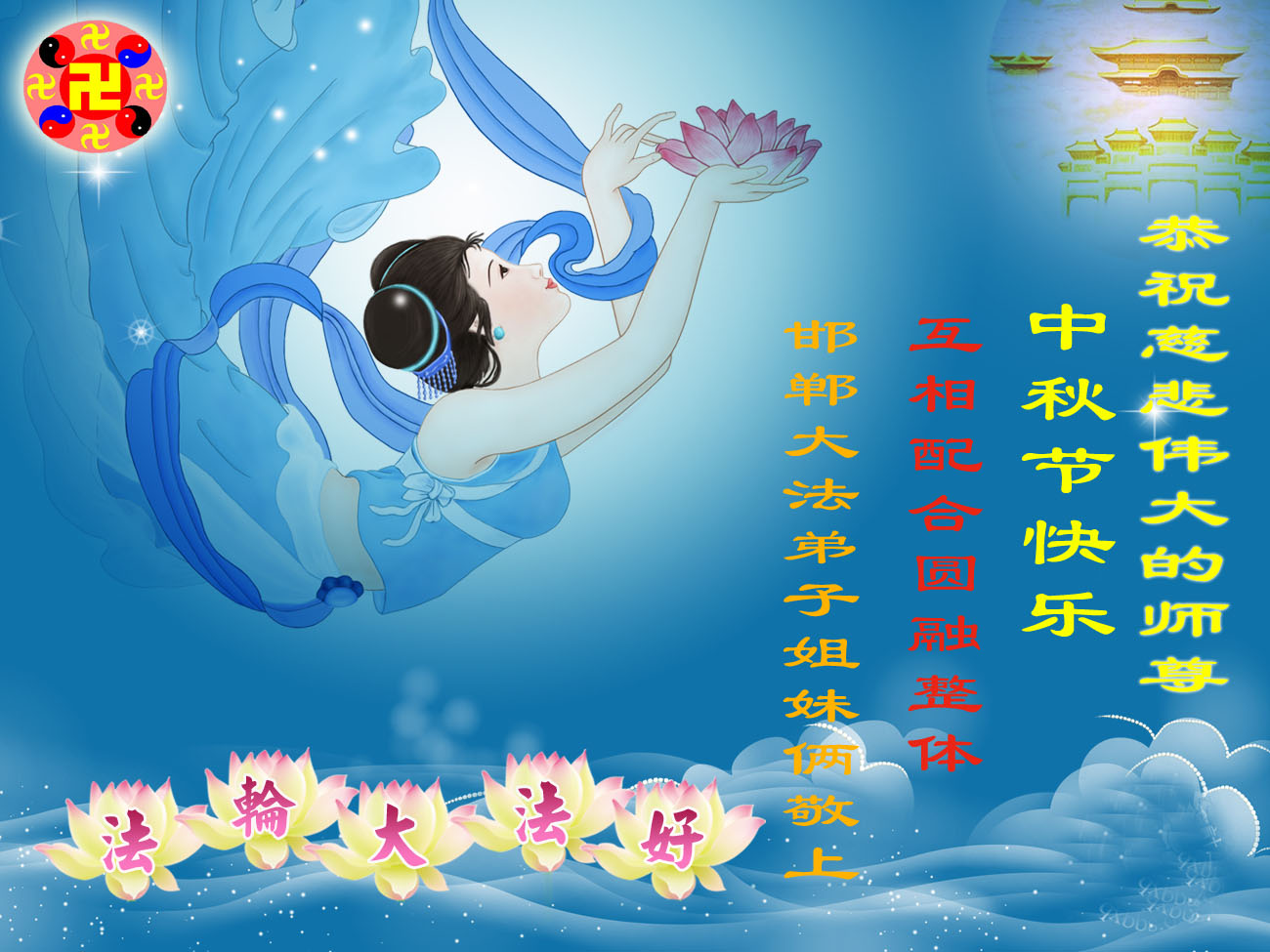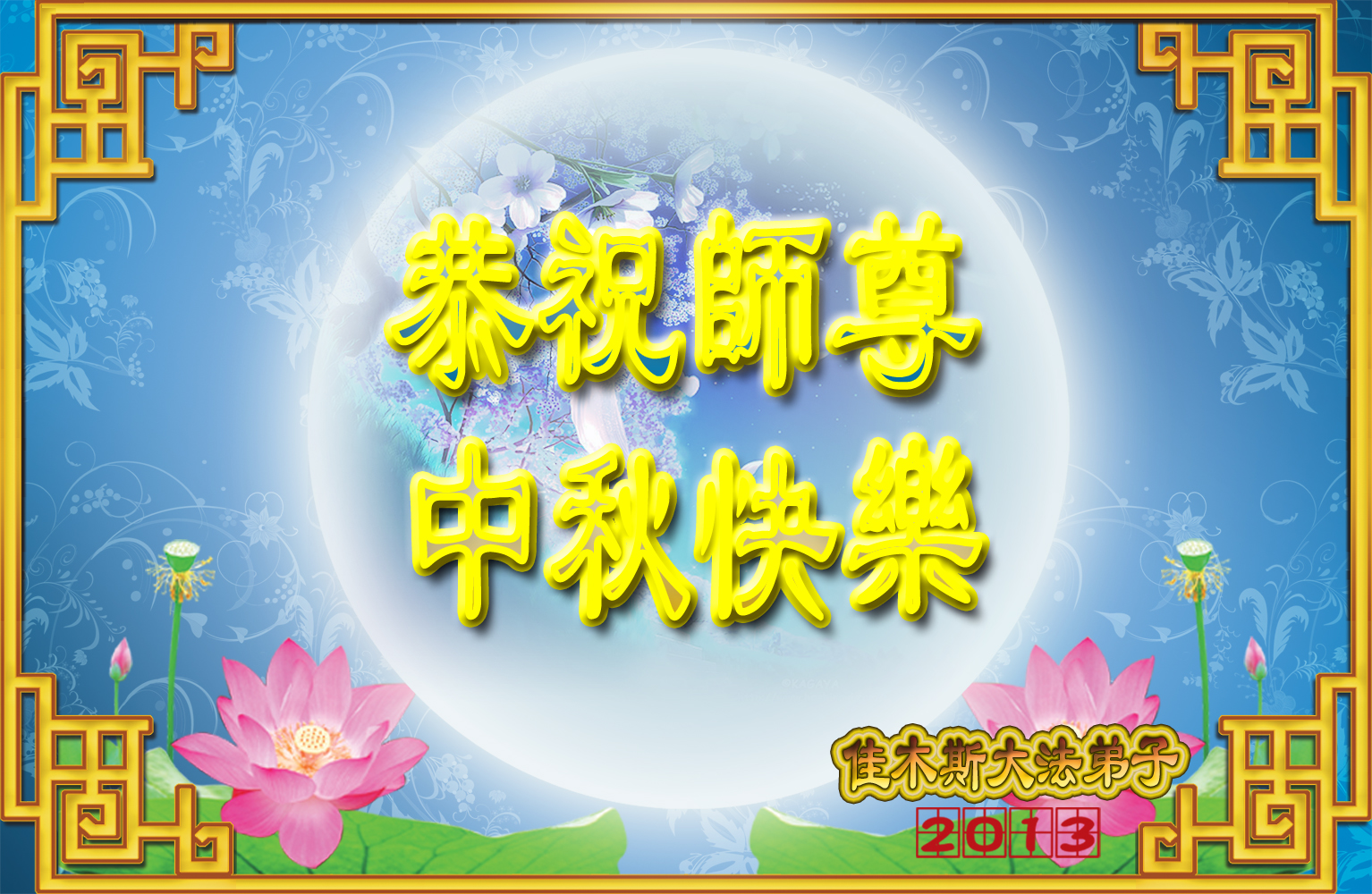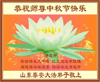 山東魚台全體大法弟子恭祝慈悲偉大的師尊:中秋節快樂!弟子們想念師尊!