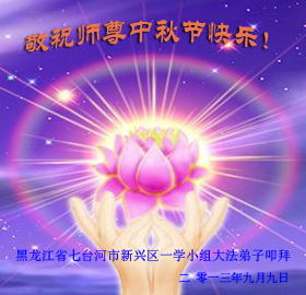 祝願法輪大法傳遍神州大地,傳遍世界的每一個角落。願善良的人們明白真相,記住法輪大法好!真、善、忍好!擁有美好的未來!恭祝偉大師尊中秋快樂!