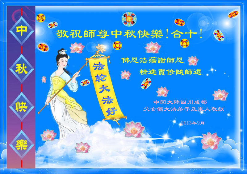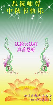 在2013年中秋節即將來臨之際成都大法弟子恭祝師尊:節日快樂!