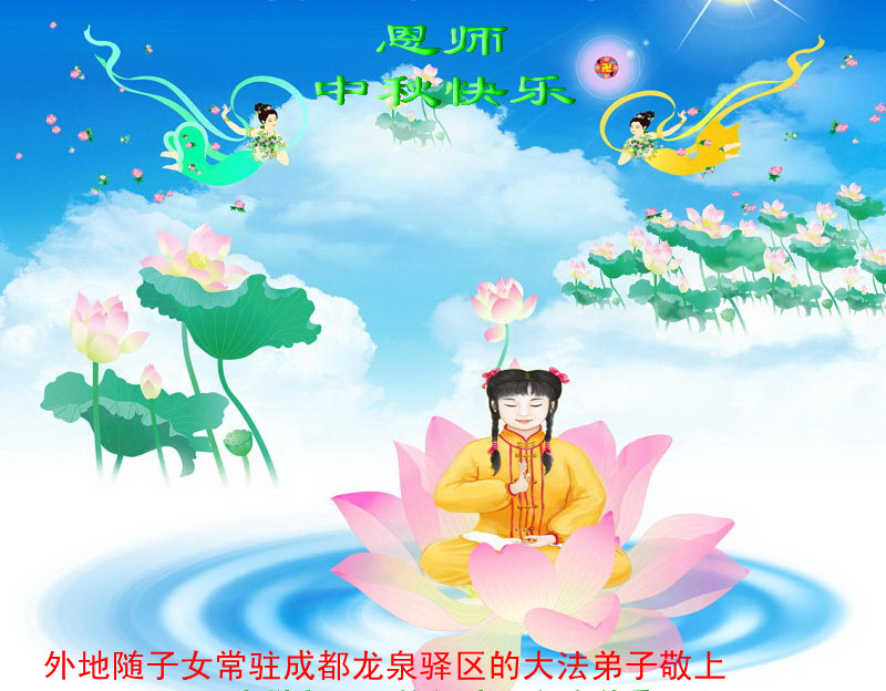 四川省成都市龍泉區一大法弟子全家恭祝師父中秋快樂,弟子一定精進實修,重新做到修煉如初,讓師父操心了。