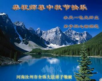 河南省汝州市全體大法弟子恭祝師尊中秋節快樂!在中秋佳節之際,弟子們特別想念師父,盼望師父早日回歸大陸。正法即將結束,在最後的最後,弟子們一定做到以法為師,真修實修,全面歸正自己的一切不足,做好三件事,配合好,用心講真相救眾生,走正各自的正法修煉之路,滿載隨師還。謝謝師父!!