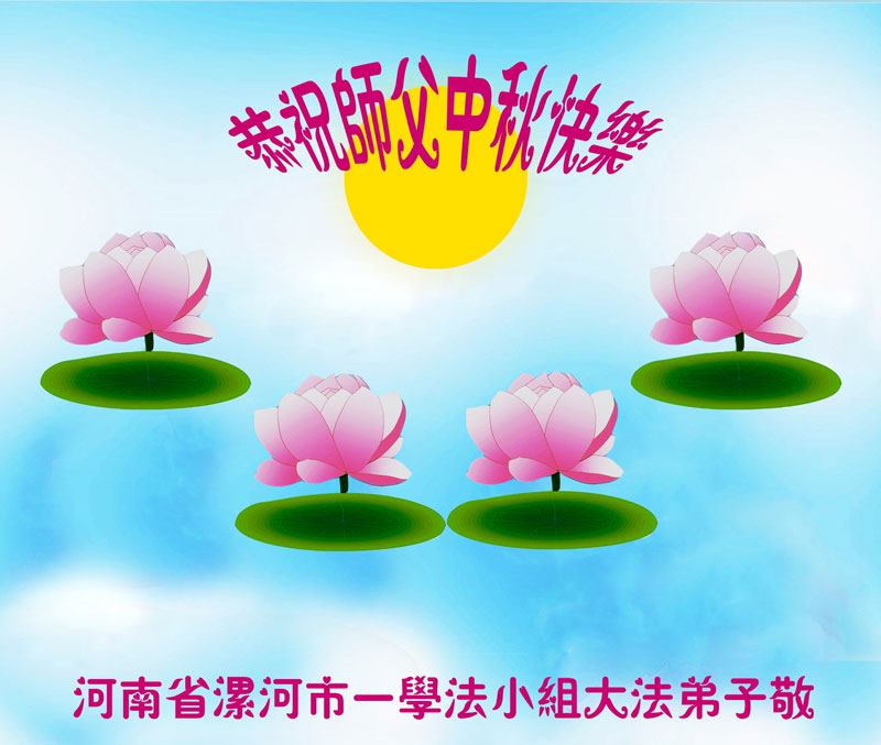 漯河市全體大法弟子們想念您!叩拜師父!正值金秋送爽、佳節來臨之際,我們再一次用小小的賀卡寄語思念。我們雖然從未見過師面,但我們感覺師父時時在我們身邊。請師父放心,我們會學好法,修好自己,多救眾生,做好三件事。