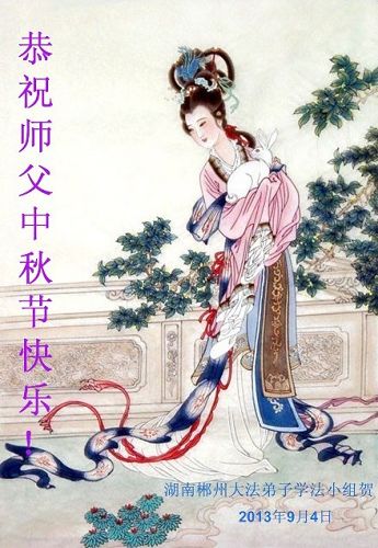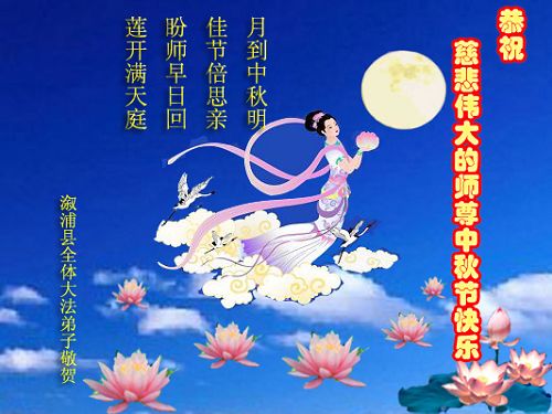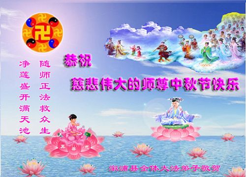 師尊您好!在這歸期不遠的最後時刻,我們漵浦縣全體大法弟子一定謹遵您的教誨,在修好自己的同時救度更多的世人,讓您多一份欣慰,少一份操勞。同時,也請接受弟子們最誠摯的問候,讓我們說一聲:謝謝您,師父,您辛苦了!祝您中秋節快樂!叩拜、合十!