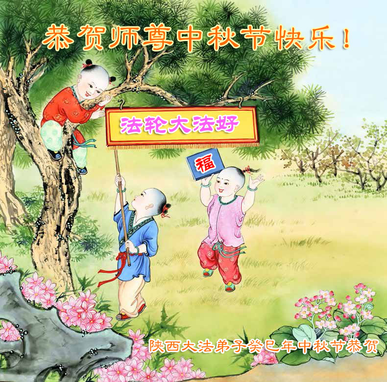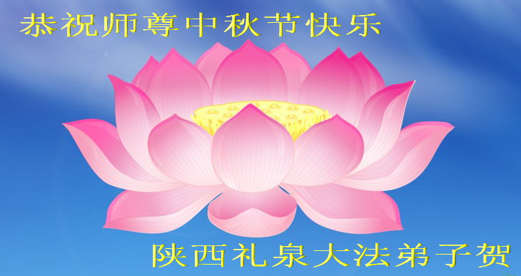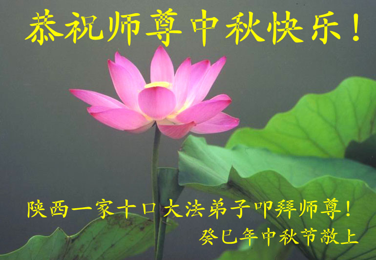 每逢佳節倍思親。寶雞市一家大法弟子遙拜師尊,祝師父中秋節快樂。弟子們一定做好三件事,精進實修,兌現誓約。