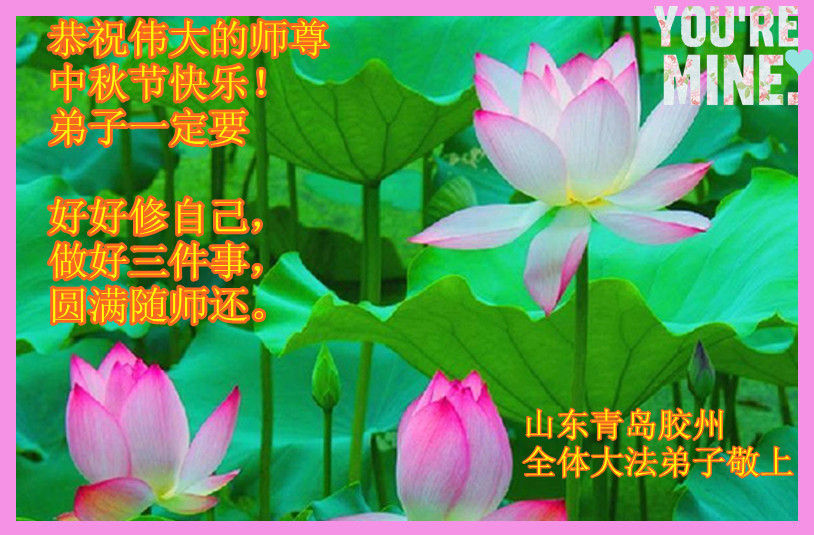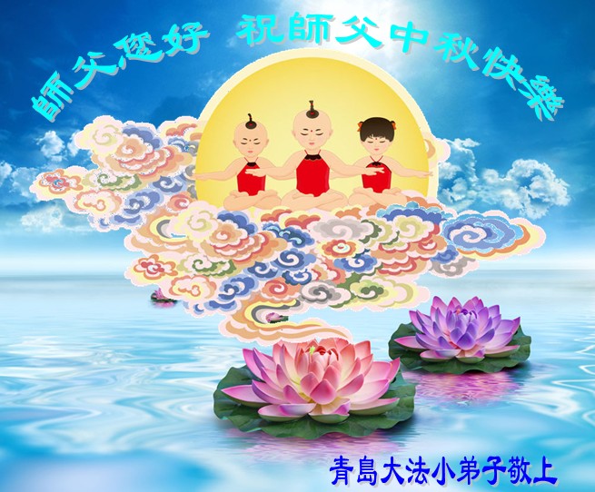 青島學法小組全體大法弟子值此中秋節之際,向您致以最誠摯的問候!我們一定要認真修好自己,向內找,互相切磋,做好三件事,努力救度更多的眾生,以慰浩蕩師恩!我們保證,無論在這條路上走的多麼艱辛,我們都一定會堅定的走到最後,隨師回家!師尊,請您放心!