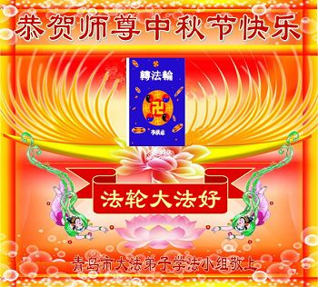 山東省青島二個學法小組全體大法弟子祝師父中秋快樂!