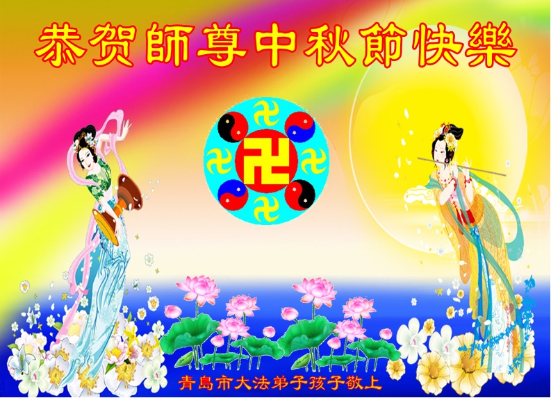 山東省青島大法弟子恭賀師尊中秋節快樂!