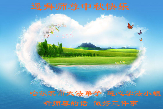 黑龍江省哈爾濱三位大法弟子學法小組遙拜師尊中秋快樂!