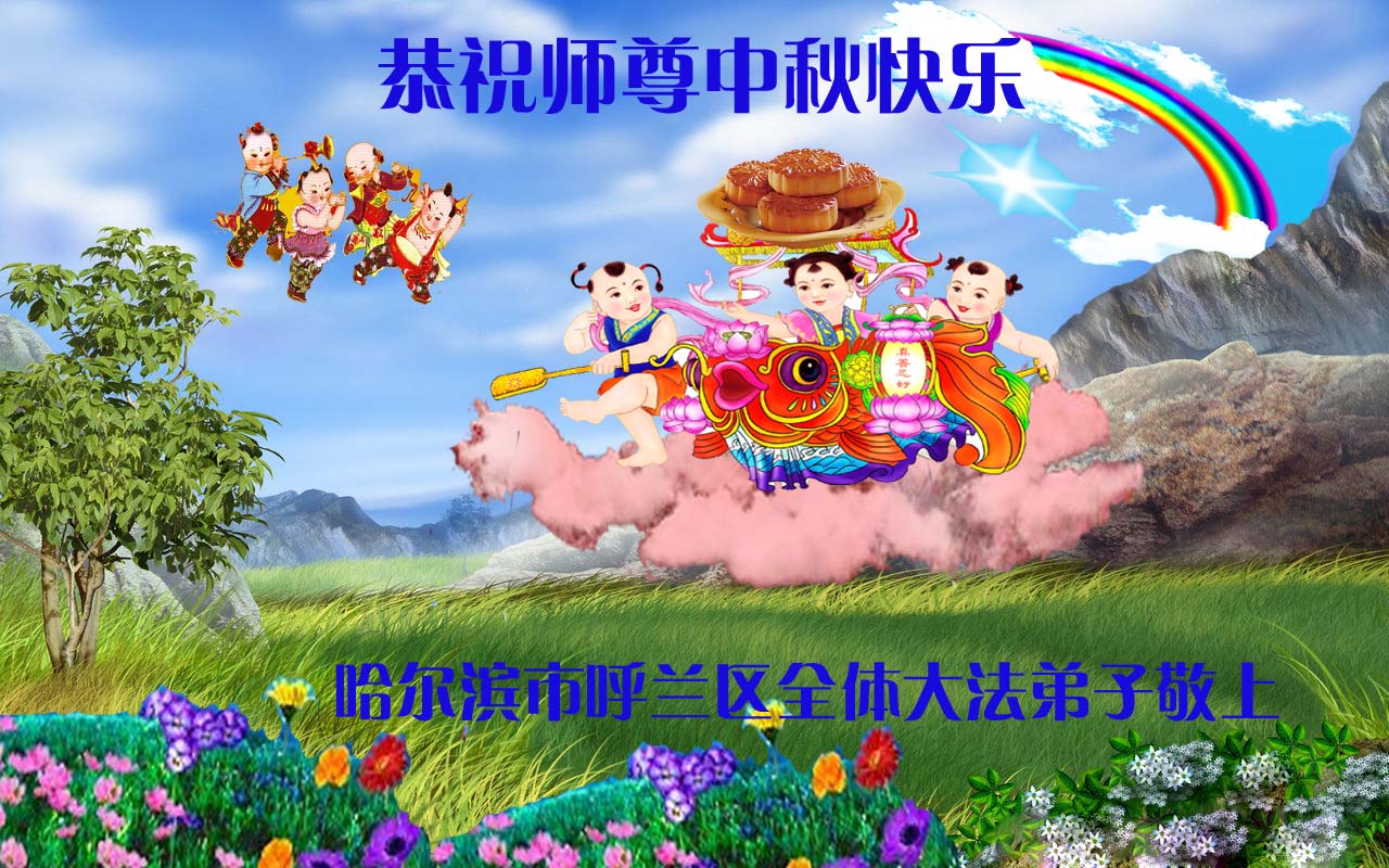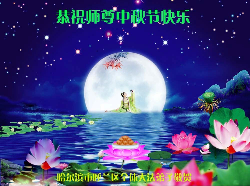 黑龍江省哈爾濱呼蘭區全體大法弟子恭祝慈悲偉大的師尊中秋節快樂!