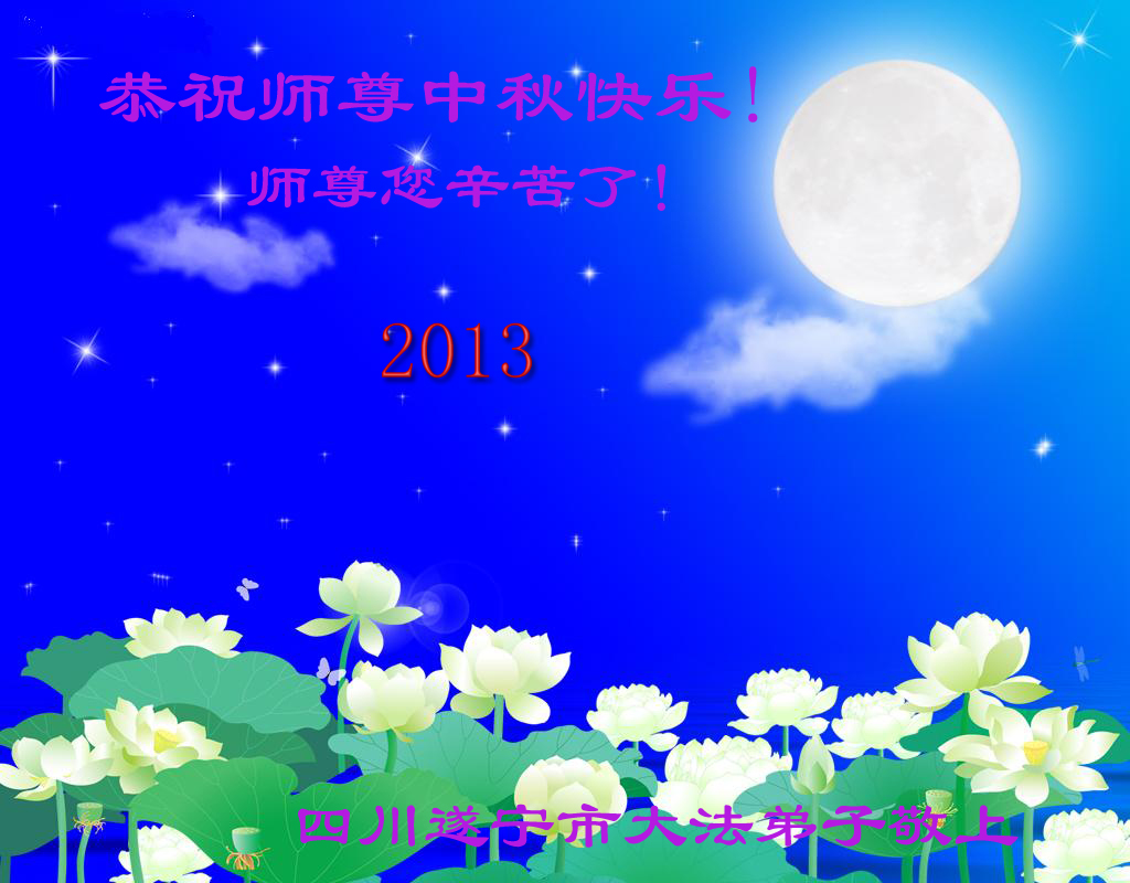 師尊您好!值此中秋節即將來臨之際,我們遂寧市大法弟子叩拜師尊,並真誠的道一聲:師尊您辛苦了!弟子們非常想念您!盼望與師尊早日團圓!