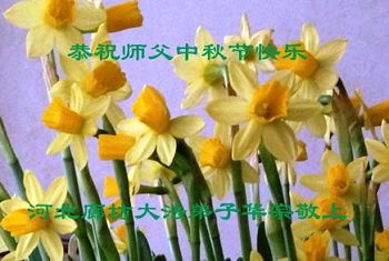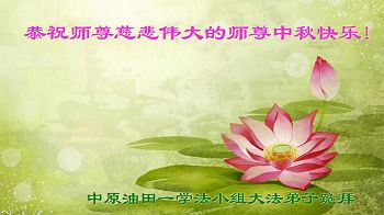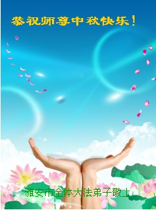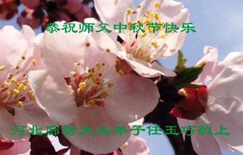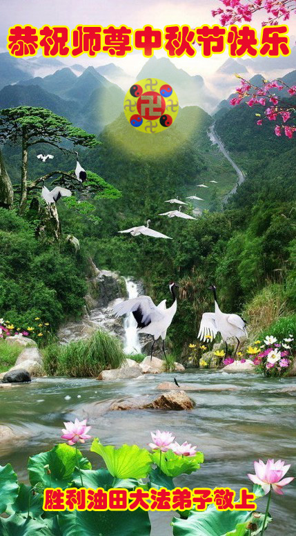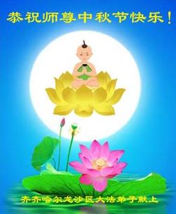 師尊,您辛苦了!我們以前磕磕碰碰的走了不少彎路,讓師尊為我們多承受了太多的痛苦,真是愧對師尊。在師尊的慈悲呵護下,我們認識到了自己的不足,漸漸的走正了自己的修煉之路,正法弟子的三件事在逐漸做好,謝謝師尊的慈悲苦度。在此中秋佳節之際,我們縣全體大法弟子恭祝師尊中秋快樂!