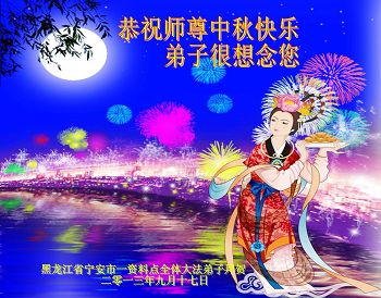 每逢佳節倍思親,在這親人團聚的時刻,我們非常想念師父,希望一張小小賀卡給師父帶去中秋的問候,大陸的大法弟子都想念師父。祝師父中秋快樂。請師父放心,我們正在加倍努力做好三件事,迎接師父歸來。
