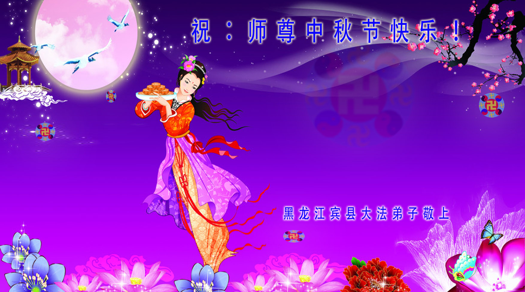 黑龍江省哈爾濱市賓縣大法弟子恭祝師尊中秋節快樂!