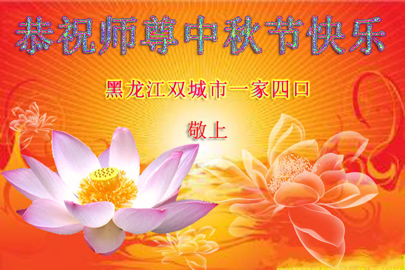 黑龍江省哈爾濱市雙城市一家四口大法弟子恭祝師尊中秋節快樂!