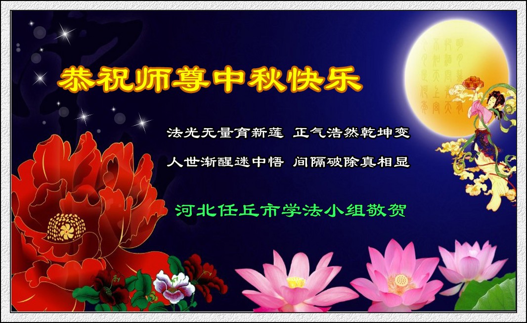河北省滄州市任丘市及華北石油大法弟子恭祝師尊中秋節快樂!
