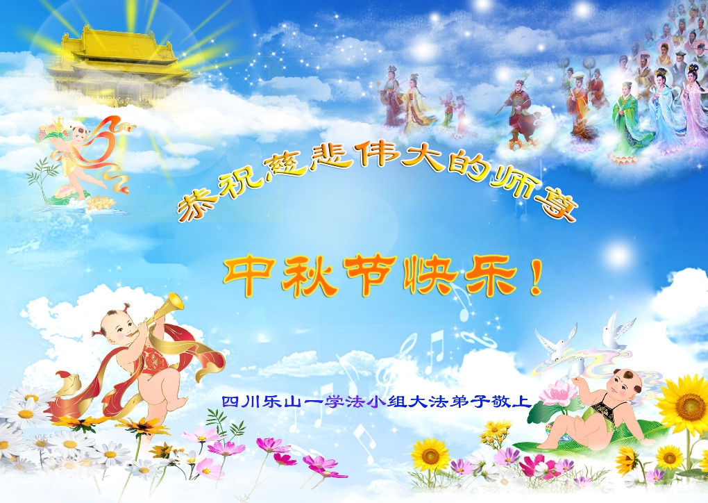 四川樂山一學法小組大法弟子恭祝師父中秋節快樂!