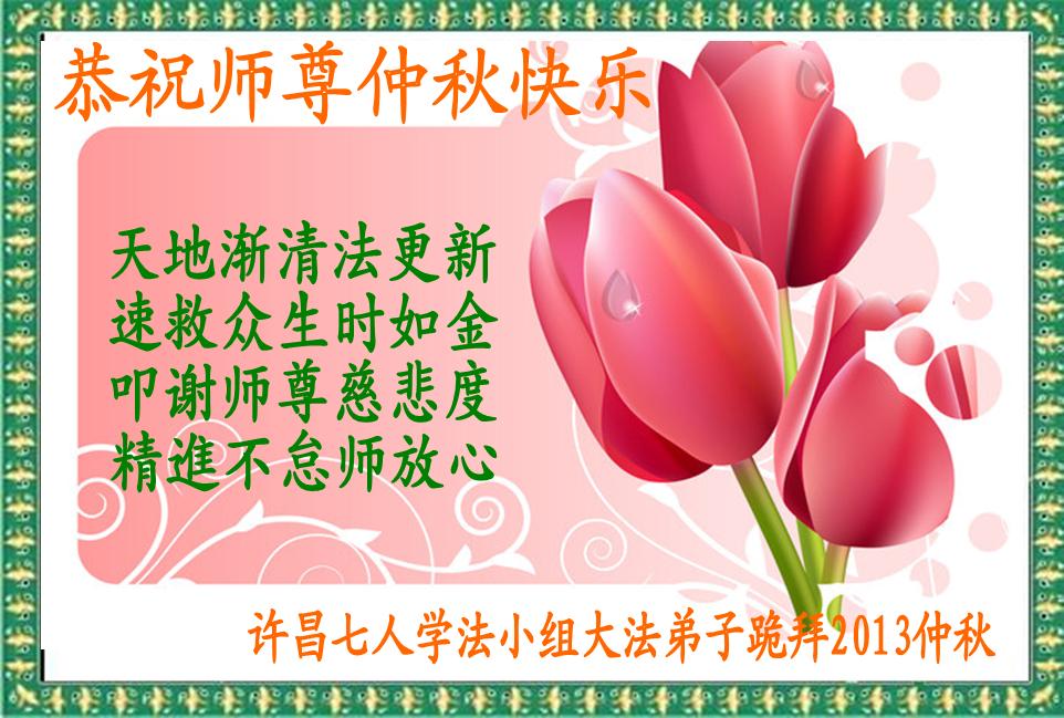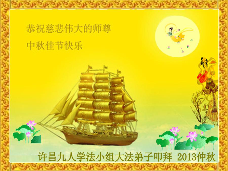 河南許昌七人學法小組大法弟子祝慈悲偉大的師尊中秋佳節快樂!