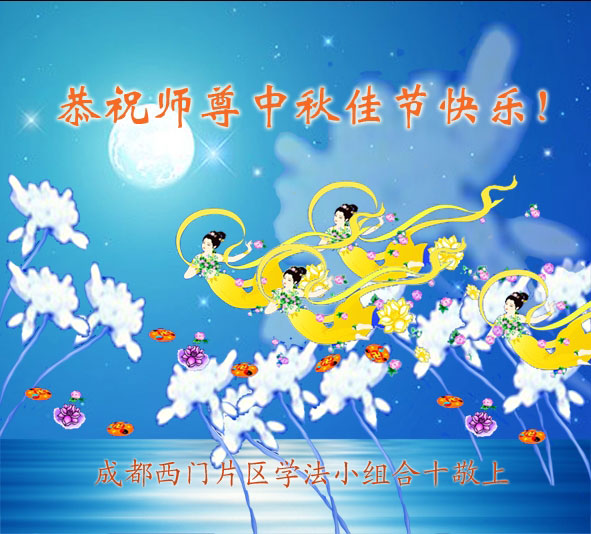 四川省成都西門片區學法小組大法弟子恭祝師尊中秋佳節快樂!