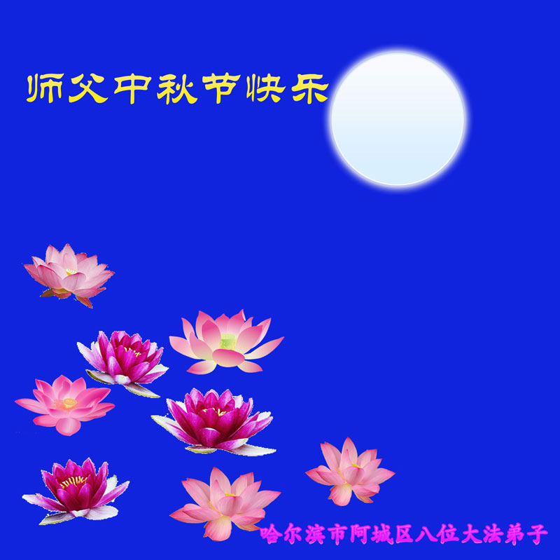 黑龍江省哈爾濱市阿城市區八位大法弟子恭祝師父中秋節快樂!