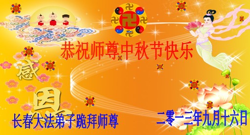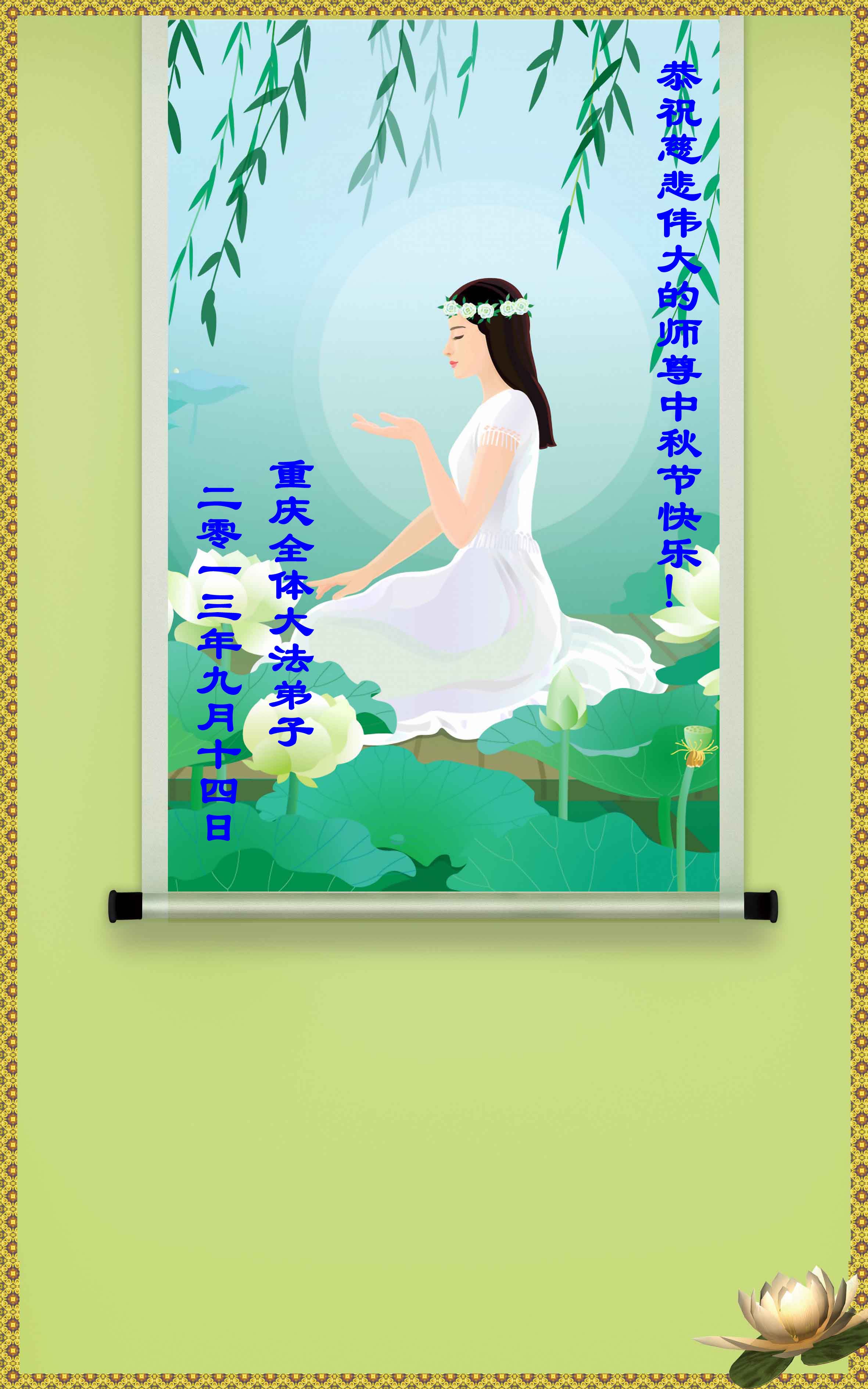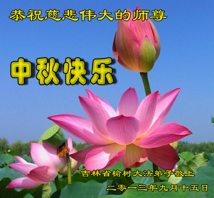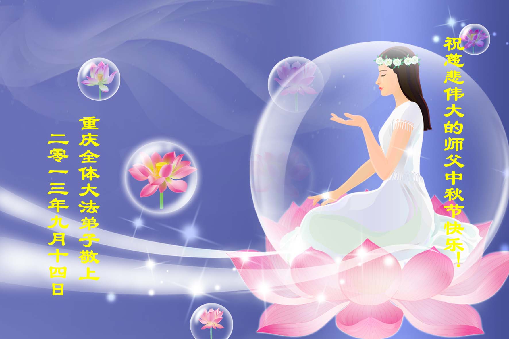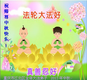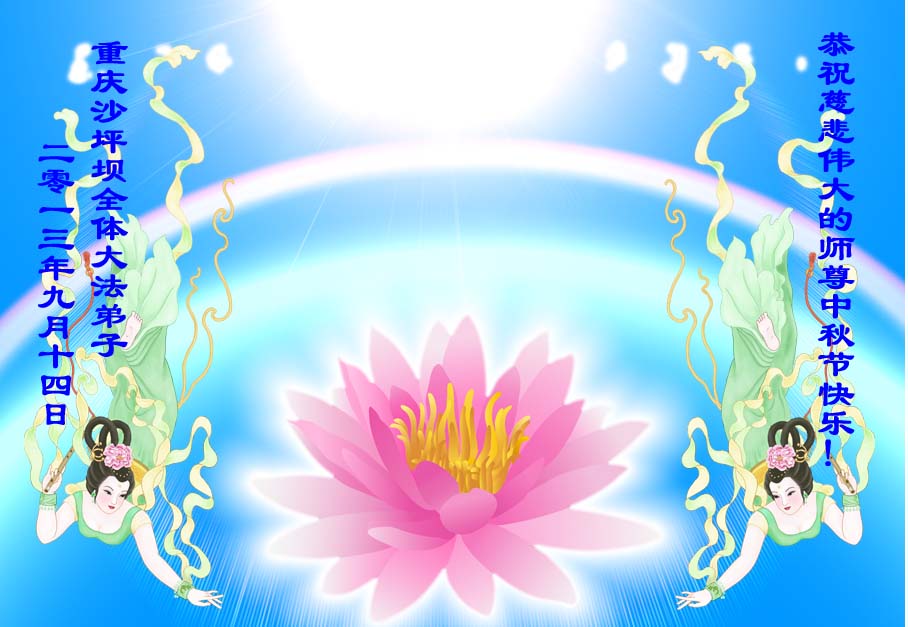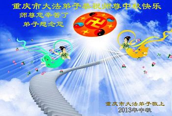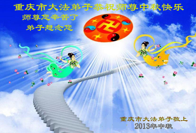 二零一三年八月中秋佳節之際,重慶大法弟子全家向慈悲偉大的師尊問好!祝師尊中秋佳節快樂!