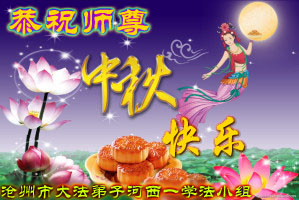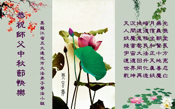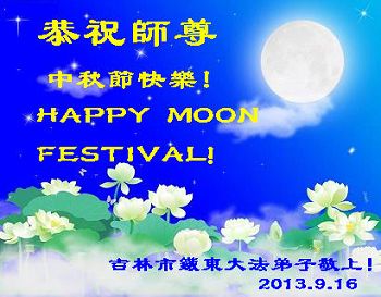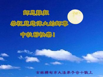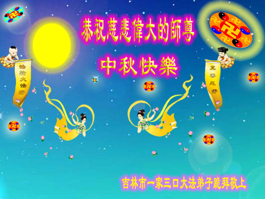 在中秋節到來之際,大陸一學法小組,恭賀慈悲偉大的師父節日快樂!請師父放心,我們一定聽師父的話,做好三件事。