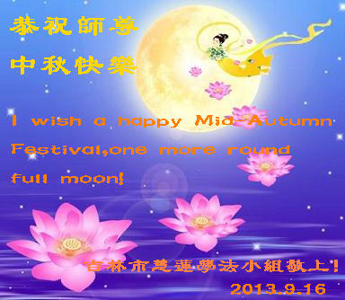 2013年9月16日敬上,祝師尊中秋節快樂!