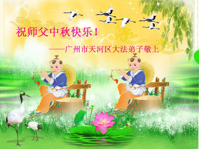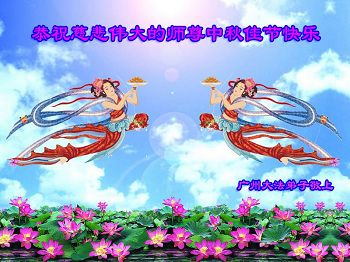 廣東省增城市全體大法弟子敬祝慈悲偉大的師父:中秋節快樂! 我們母女倆弟子堅信師父,堅修大法,堅定不移走好師父安排的修煉之路,堅決做好三件事。