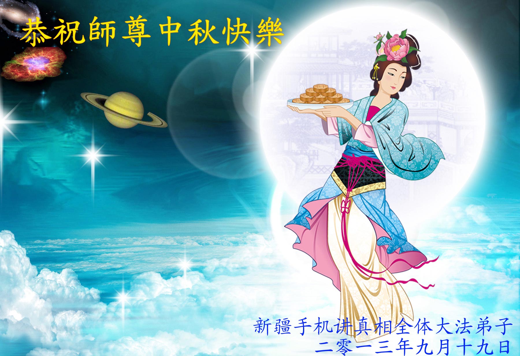 每逢佳節倍思親,2013年的中秋節到了,新疆喀什大法弟子想念師父,祝師父中秋節愉快。弟子時刻牢記自己的使命,做好三件事,盡最大能力救度更多的眾生。
