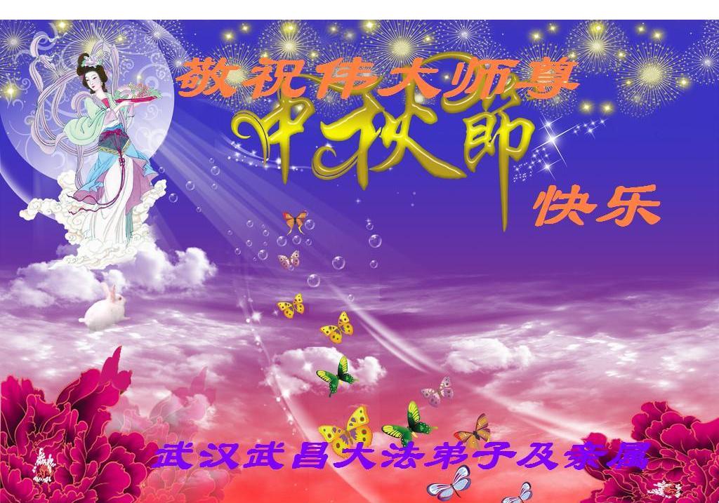 武漢市江岸區一學法小組全體大法弟子恭祝慈悲偉大的師尊中秋節快樂!我們一定緊跟師尊的正法進程,抓緊時間做好三件事,多救人,把剩下的事做好!