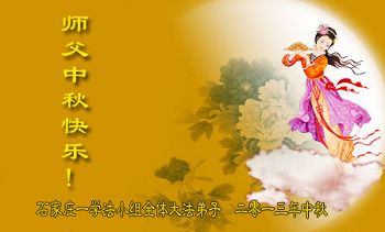 我們學法小組真誠的祝偉大慈悲的師尊中秋節愉快!我們在這正法所剩不多的時間裏,向內找實修自己,多救人,做好三件事。讓師父多一分開心,少一分操勞。叩拜師尊!