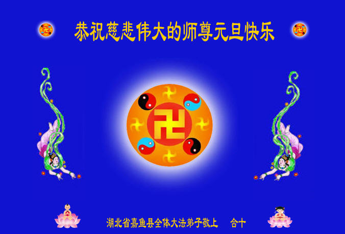 湖北省咸寧市嘉魚縣全體大法弟子恭祝慈悲偉大的師尊元旦快樂!