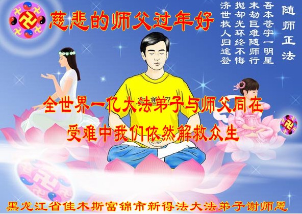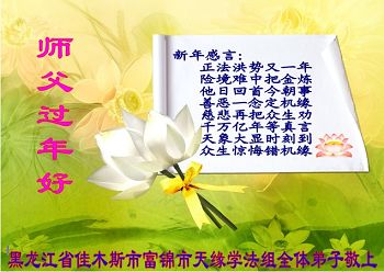 黑龍江省佳木斯富錦市新得法大法弟子謝師恩,恭賀師父過年好!