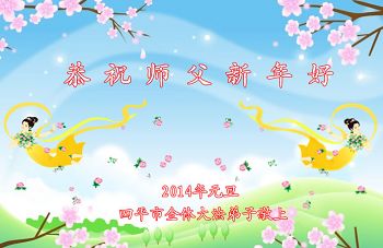 天津大法弟子父子衷心恭賀慈悲的師父2014年元旦快樂!