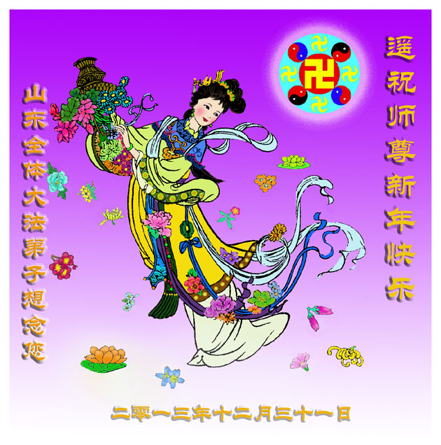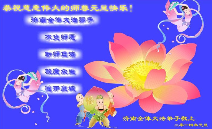 山東省濟南全體大法弟子恭祝慈悲偉大的師尊元旦快樂!