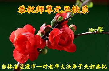 吉林省遼源市一對老年大法弟子夫婦恭祝師尊元旦快樂!